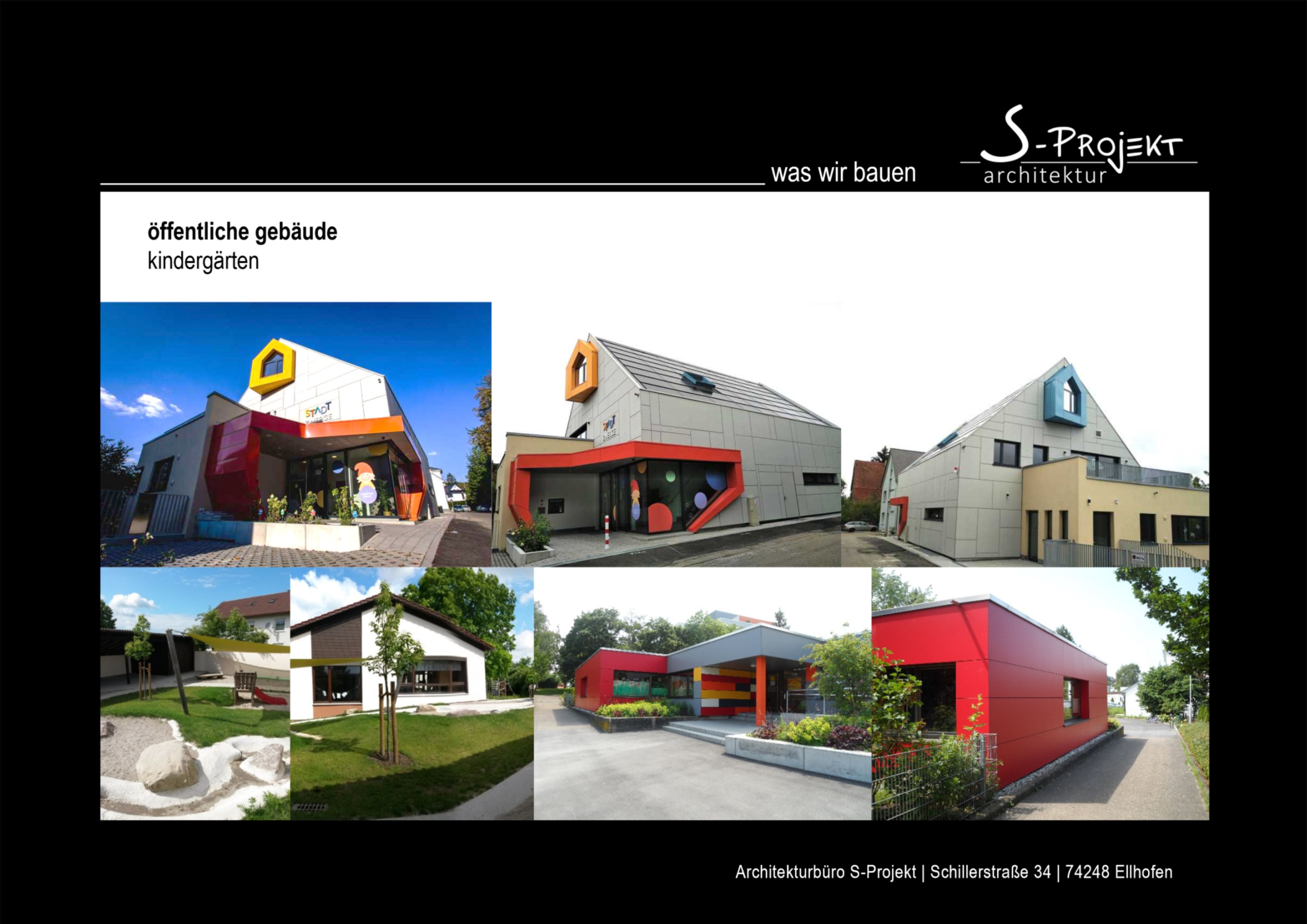 S-Projekt | architektur begleitet öffentliche und private Bauherren in unterschiedlichen Aufgabenfeldern – vom Gemeindehaus über Kindergärten bis hin zu Wohnquartieren und Klinikbauten.